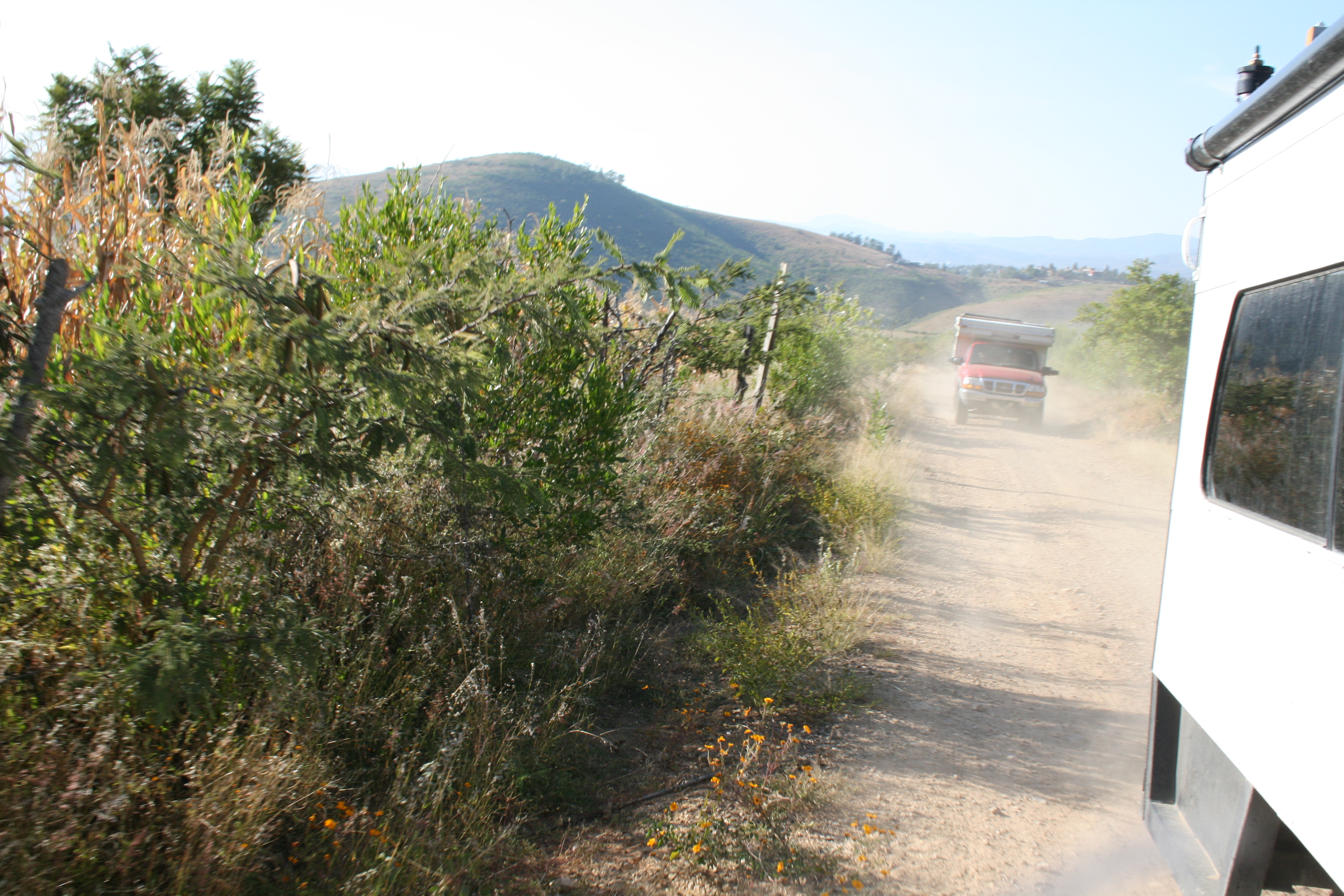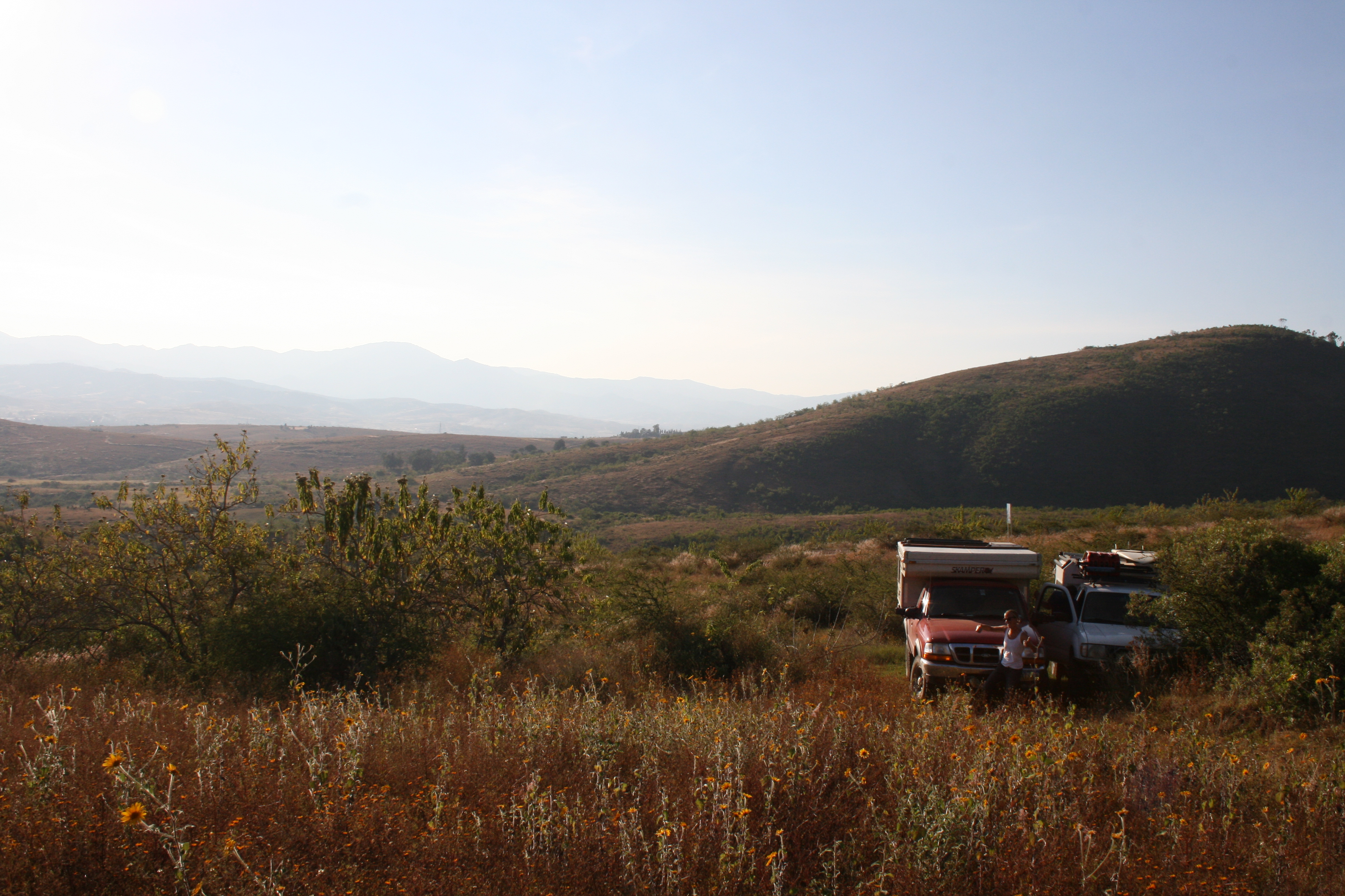 Our scouting mission was cut short by the tuk-tuk that came barreling down the road.  The words from numerous blogs came to life in front of me.  “When we had reached what we thought was the limit of our 4WD rigs, a crappy 2 wheel drive car would inevitably come cruising past us in no apparent distress at the conditions of the road (loosely adapted).”  We decided that this spot would work.  Ken gunned Suzie, she seemed ready to tackle the uneven terrain.  As we traversed the ditch, Suzie became airborne.  Rather one wheel left the ground and she seemed to teeter to a stop, balanced on her front axle, leaning towards the passenger side.  A million things happened in the space of a second.  I assumed we were not only high centered but about to go over so I leaped into Ken’s lap inadvertently grabbing the steering wheel.  Ken locked eyes with Kylee, noted the expression of horror on her face and hit the gas.  Somehow, miraculously, the other three tires grabbed and Suzie jumped out of the huge hole that Ken had accidentally driven into.  Joe and Kylee did not follow our example and managed to safely negotiate their truck into a ‘hidden’ nook next to us.  We cracked some beers and watched the sunset over Oaxaca.  After a delicious meal of chorizo, potato, peppers, mushrooms, rice, and squash, we started doing some dishes.  I was in the camper scrubbing away and saw some headlights approaching up the road.  We assumed they would continue past us considering we were so well hidden from view.  Instead, they stopped at the bottom of our illicit entrance and five separate lights approached us.  ‘This is it,’ I thought to myself, ‘Ken’s mother’s prediction is about to come true.’  I considered grabbing the bear spray, but instead stepped from the camper.  Ken and Joe nervously bellowed “hola” in a very friendly, nonthreatening manner (at least I thought so).  Soon five gauchos were milling around us.  After initial greetings and queries we were able to determine that we were not in fact camped in the national park, but were in fact camped on the town of San Pablo’s public grazing and farming land.  When the gauchos realized we were harmless, clueless gringos, they loosened up considerable and made us promise to not leave any basura (trash) behind.  Relieved that we weren’t about to receive harm to life, limb, or wordily goods we offered them all a cerveza and enjoyed a bit of awkward half conversation as they taught us some new words, warned us of the dangerous plants, and admired our vehicles.  As they left we all looked at each other with ear splitting grins, this is exactly the reason why we were all doing this trip.  Sure it was not the smartest or safest move to pirate camp outside a major city, but if we hadn’t we never would’ve experienced these men and their way of life.