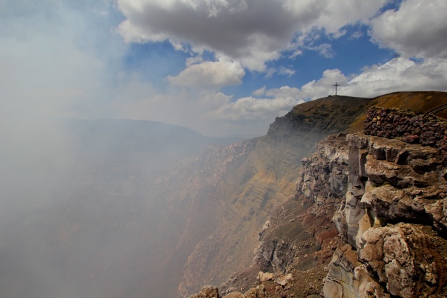 Volcano Masaya last erupted in April 2012, yet tourists are still allowed to drive their vehicles to the edge of the still smoking crater, breathing in noxious fumes and wearing hard hats, and parking their vehicles pointed towards the exit just in case there is another eruption. Luckily for us, but much to Ken’s chagrin, Masaya did not erupt and we survived another unique day on the PanAmerican.