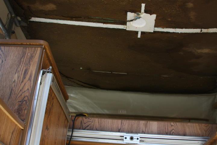 It turns out, after being outside during a record snow year coupled with a few tiny pinholes in the roof equals 200 lbs of wet, rotten plywood and insulation. Ken and a few friends tore everything out, replaced the insulation and plywood, and expoxied the crap out of all the seams and holes.